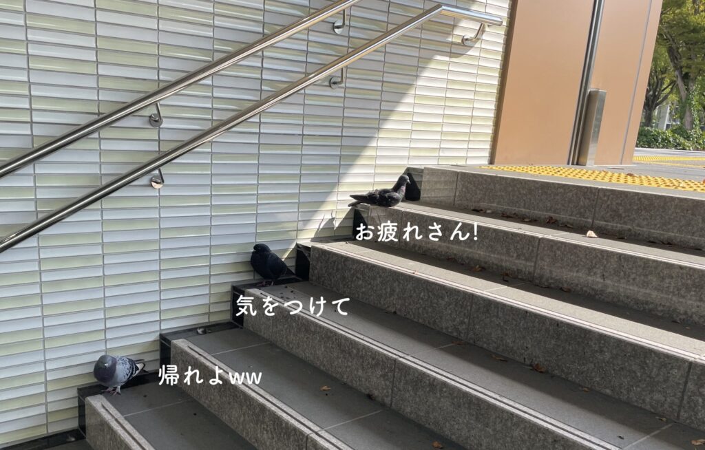 最後は3羽の鳩さんに見送られながら